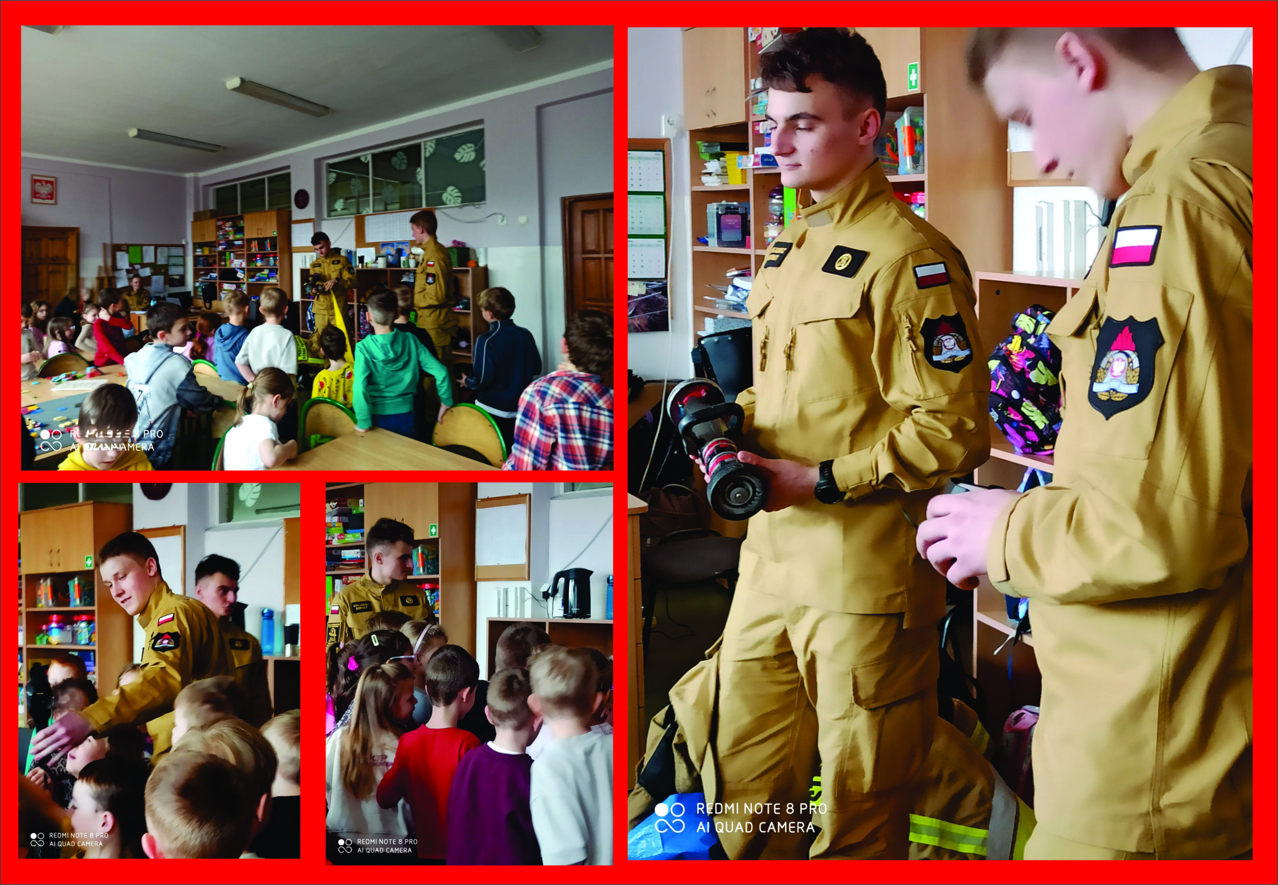 Adepci zaprezentowali elementy stroju strażackiego oraz podstawowy sprzęt wykorzystywany podczas akcji ratunkowych. Dzieci z dużym zainteresowaniem słuchały opowieści o trudnych, ale bardzo odpowiedzialnych zadaniach strażaków.